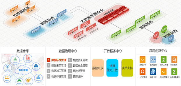 1.涉税数据“大集中”:系统全面采集并整合税务部门业务系统数据、第三方涉税数据、日常管理情报数据、互联网涉税数据和其他来源的涉税数据,形成全局共享、全面可用的数据资产。