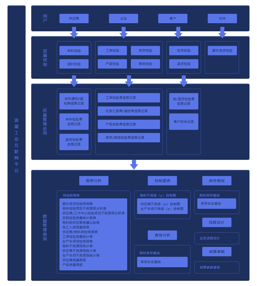 基于 ■澳门十大棋牌排行榜最新■工业互联网平台,给予质量管理与追溯功能应用,为供应商、企业、客户、伙伴给予质量管理应用。