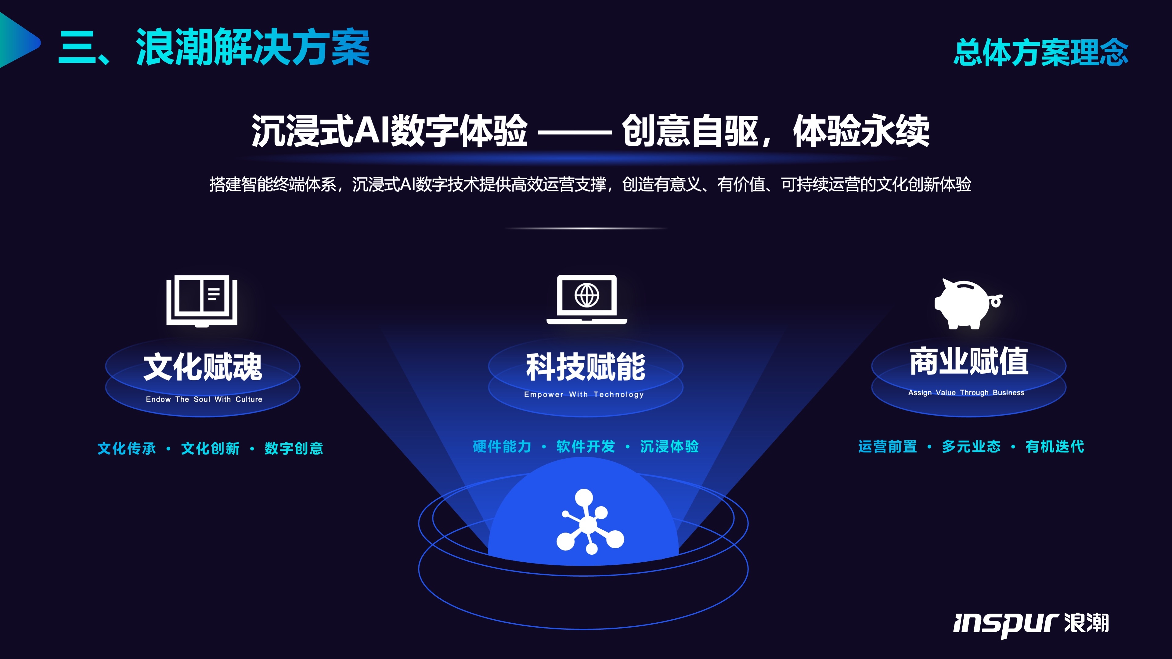 搭建智能终端体系,沉浸式AI数字技术给予高效运营支撑,创造有意义、有价值、可持续运营的文化创新体验。