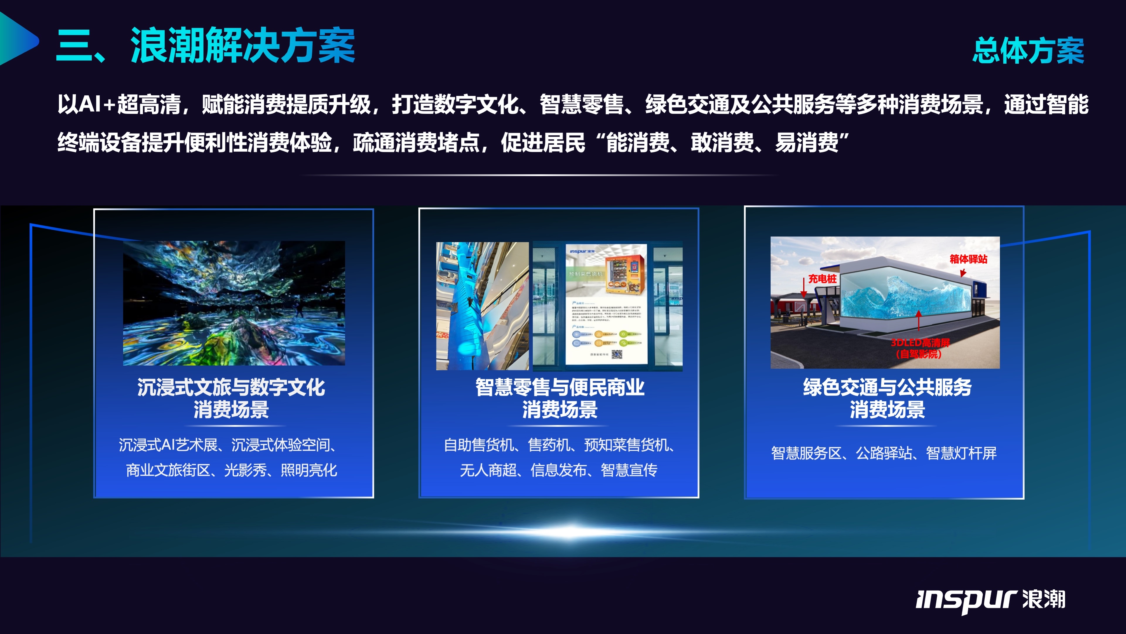 以AI+超高清,赋能消费提质升级,打造数字文化、智慧零售、绿色交通及公共服务等多种消费场景,顺利获得智能终端设备提升便利性消费体验,疏通消费堵点,促进居民“能消费、敢消费、易消费”。