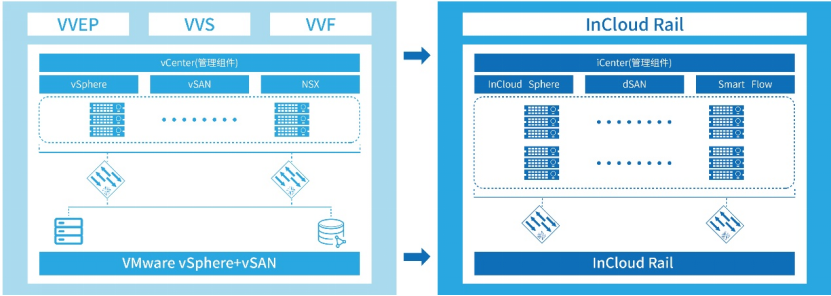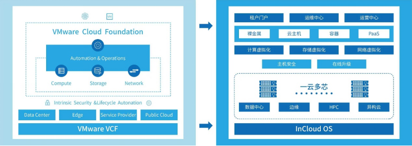 4. 多生态兼容-支持多架构跨云迁移:支持将vSphere迁移至InCloudRail的X86和C86架构,兼容多芯片生态,助力业务系统无缝切换。