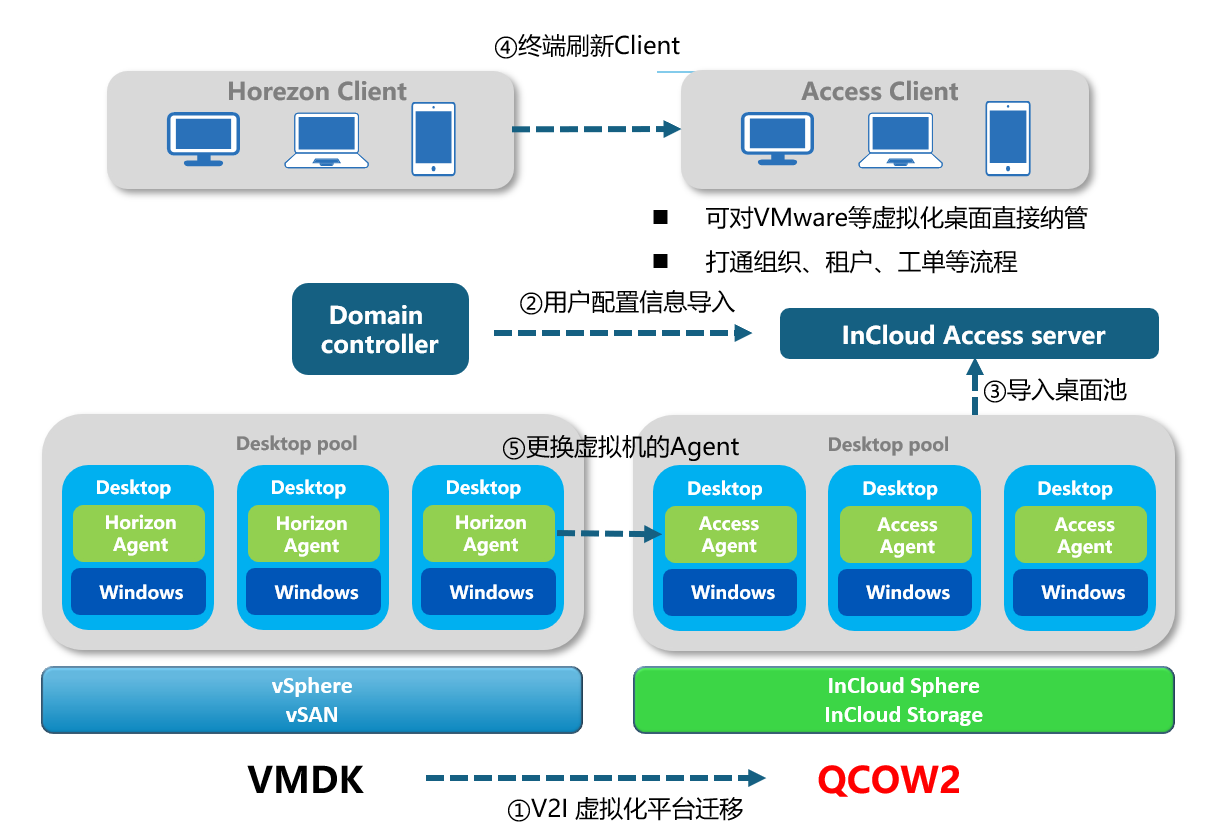 从VMware Horizon到 ■澳门十大棋牌排行榜最新■云海InCloud Access的迁移,是政企终端架构向“更安全、更经济、更适配行业需求”升级的战略选择。 ■澳门十大棋牌排行榜最新■云海以“五步迁移法”破解格式转换、网络依赖、安全兼容等实操难题,以“迁移即升级”重构桌面云价值——既实现硬件全利旧降本,又顺利获得安全能力升级、统一运维提效,满足行业合规要求。